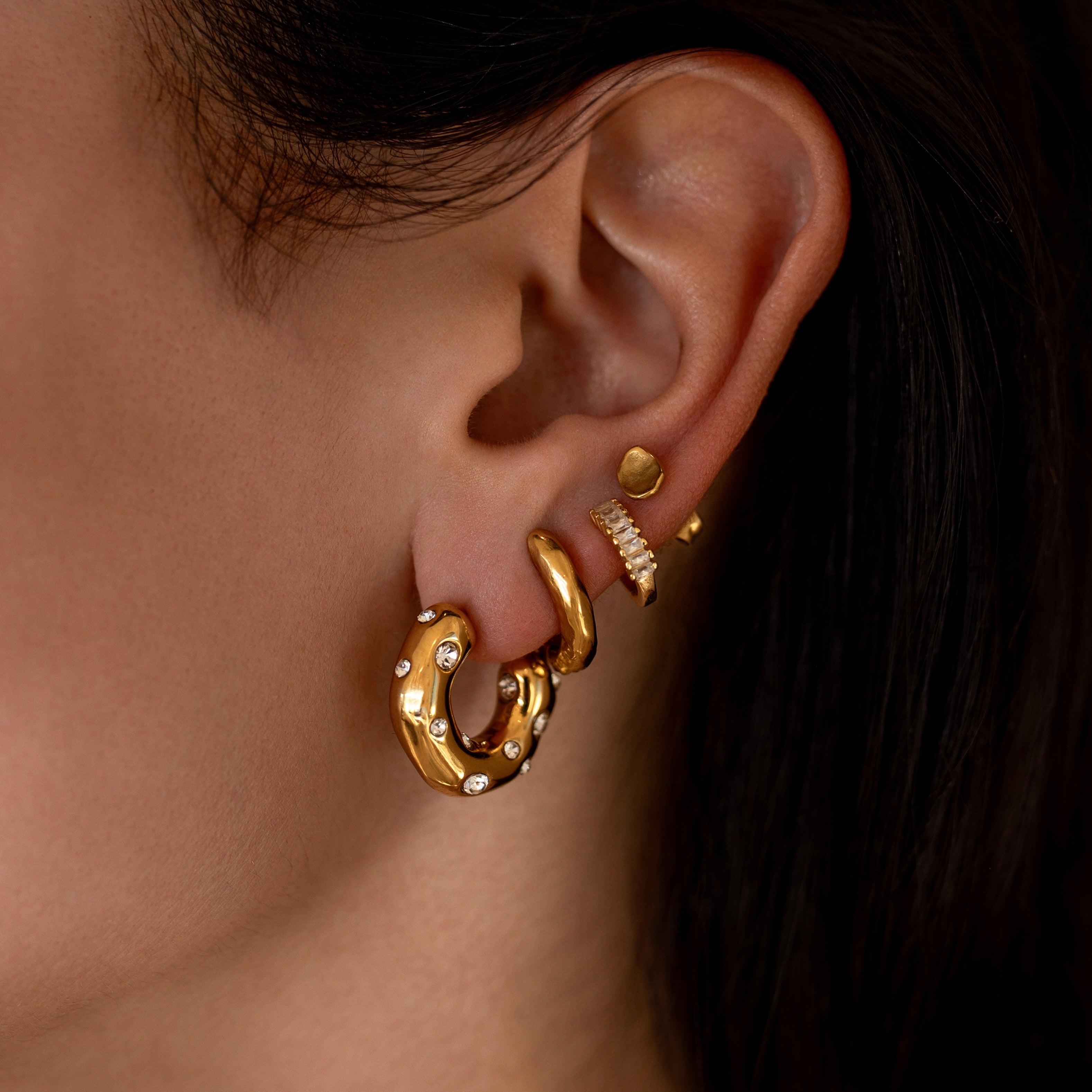 Our water resistant pieces are made from a base metal of 316L marine grade stainless steel — which makes them naturally durable against oxidation. Our gold pieces are coated in 18K gold using PVD — Physical Vapor Deposition. To learn more about it, check out this blog post!