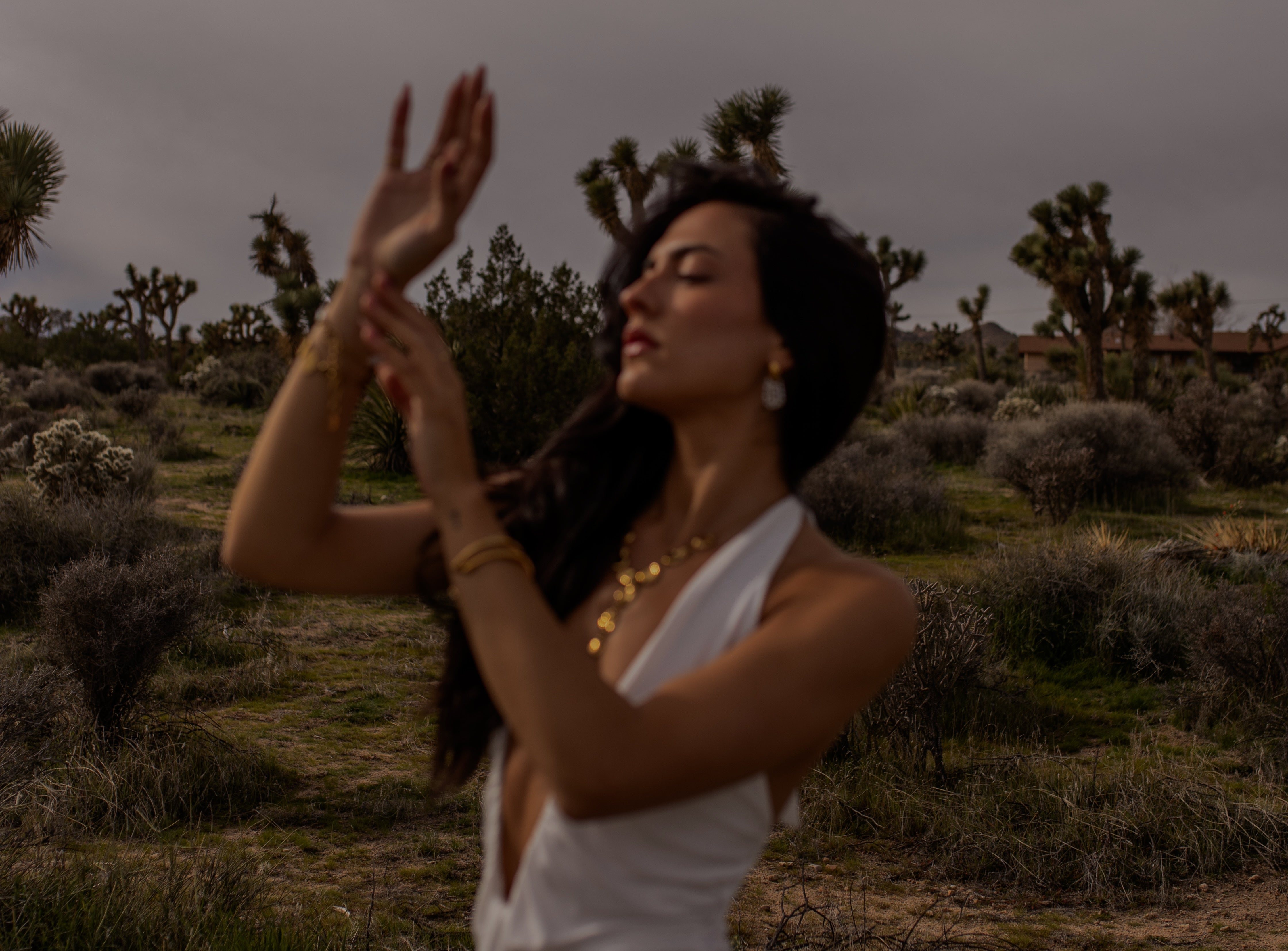 Organic gold forms and softly hammered connection rings come together to create natural texture, movement, and balance.